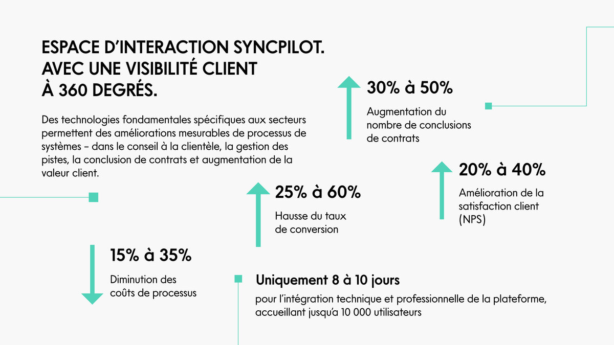 Les plates-formes Interaction Experience affichant un degré élevé d’interactions constituent un facteur de réussite essentiel pour une orientation clientèle réussie. Les solutions innovantes de SYNCPILOT coordonnent les expériences clients aux procédures internes.